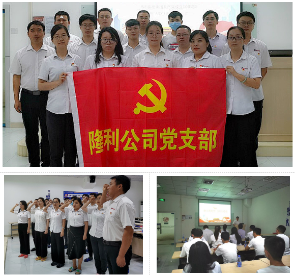 2021年7月1日08:30隆利科技的所有黨員齊聚共慶中國共產(chǎn)黨成立100周年。全體黨員一起觀(guān)看建黨100周年直播,舉辦了莊重的宣誓儀式。黨支部書(shū)記提倡向榮獲黨內最高榮譽(yù)“七一勛章”的29位杰出黨員代表學(xué)習。
